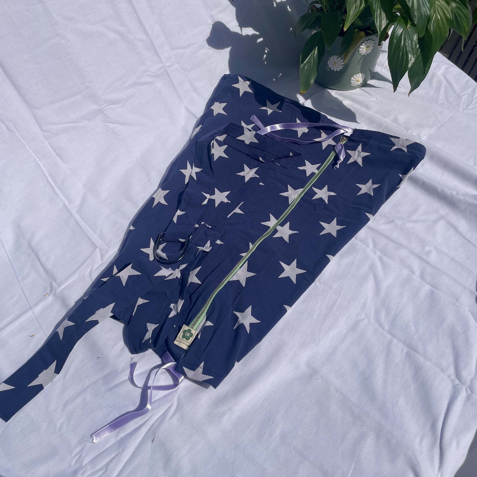 This is the MarieBloom, my original design, and it is made from leftover and secondhand materials. This MarieBloom is perfect to easily and safely carry your flowers home. It has a small pouch attached inside for you to neatly store it in your bag. You’ll have your hands free to carry your grocery bags, walk home or bike to a dinner party. All while being eco-friendly and fashionable!